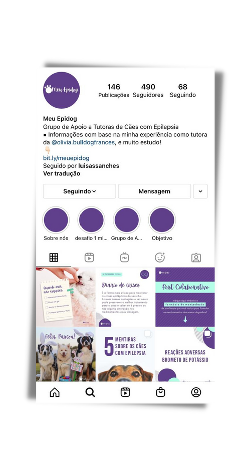 Perfil dedicado a um Grupo de Apoio a Tutoras de Cães com Epilepsia.